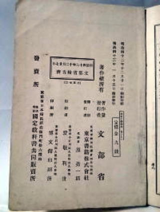 | 尋常小学 「読本」巻9 明治43年1月15日発行 222×148×7mm 96ページ 162g |